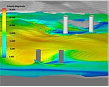 采用FLOW-3D 进行流场计算,流体工程师能够在平均水位高度的信息上得到相当精确的预测值(与传统的二维计算分析工具相比)。举例而言,FLOW-3D 能够模拟洪水越过坝体后造成的漩涡,以及模拟洪水冲击坝体的状况。