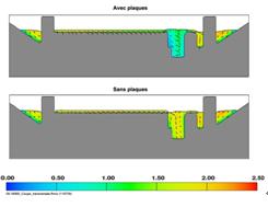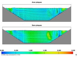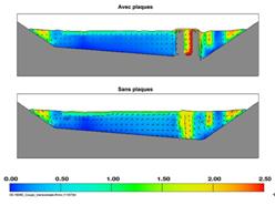 2. 截面显示鱼梯混凝土造型对于流场的影响