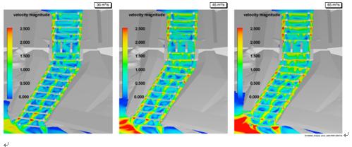 - 由于实际流场相当紊乱,有时候同一个位置甚至会量测到两组差异极大的速度,因此我们对于目前 FLOW-3D 得到的结果相当满意。