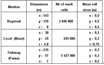 • 区域模型( regional model ):包含了河流以及鱼梯附近的地形