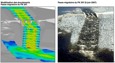 - 在正常的繁殖季节,鱼梯位置的流量为最大流量( 22 m 3 /s )的 45% ,鱼梯凹型槽位置的最高速度为 2, 6 m