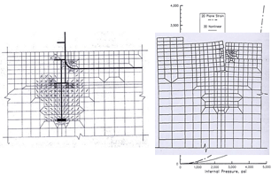 ASME 压力容器和锅炉设计标准要求在设计阶段必须进行假定的缺陷分析(ASME Section III, 1986);设计标准同时还要求对运行的核反应堆压力容器检验中检测到的缺陷用裂痕扩展允许准则进行评估(ASME Section XI, 1986)。 由于LEFM和对模型过于简化的2-D断裂分析的局限性,ASME 压力容器和锅炉设计标准所要求的断裂分析方法过于保守,例如:针对无限长的轴向裂纹的平面应变模型和针对连续周向裂纹的轴对称模型。针对核反应堆压力容器的脆性材料的非线性分析是十分必要的。