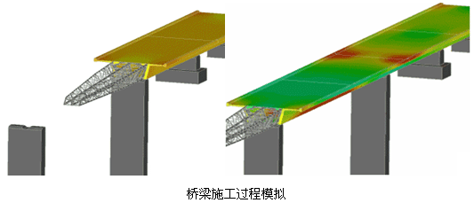 一、桥梁施工过程模拟 在桥梁施工方面Abaqus提供了单元生死(Model Change)、钢筋混凝土材料属性以及钢筋预紧力等功能。下图是某大桥施工过程的模拟。