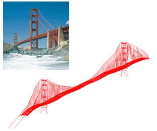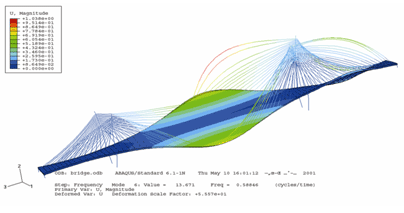 三、美国金门桥地震响应分析 Abaqus有功能强大的显式求解器,下图是利用Abaqus显式求解器对美国金门大桥做的地震响应分析。