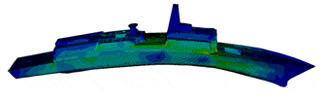 船舶的总体强度分析在船舶的设计中是首先需要考虑的问题。船的结构庞大,往往是计算模拟的难点所在。Abaqus针对这类大型问题,拥有专门的技术可以在工程应用领域对此类问题获得良好的解。下图是国内某单位采用Abaqus对某型舰艇进行了强度分析,计算中分别考虑6级和9级海况下,船舶的抗风浪能力。