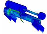 1989年4月19日美国USS IOWA战列舰2号炮塔发生无法解释的爆炸, 47名人员死亡。美国海军推断,推进炸药爆炸促成了击发拴座(rammermans seat)进入操作杆弧座(quadrant)或等效于在事故中拴的速度很低。本例用Abaqus/Explicit对击发拴座的运动进行分析。