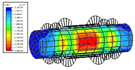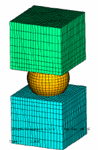 由于以上两个求解器均为Abaqus自己开发的产品,二者的结合非常紧密,其输入文件的语法格式完全一致。在前后处理模块Abaqus/CAE中,还允许用户对同一有限元模型方便地在这两种分析方法中切换,并保留以前分析中定义好的载荷,接触,边界条件等内容,这为用户对同一个问题采用不同算法进行分析提供了方便的途径。 Abaqus提供了丰富的材料模型库,用户可以方便的选择包括金属,工程塑料,泡沫材料等多种材料本构模型,可以考虑材料的塑性,损伤,失效,温度相关等非线性效应,用户还可以利用Abaqus的用户子程序的功能进一步添加自己所需要的材料模型。 Abaqus提供了丰富的单元库,其中的实体壳单元(SC8R,SC6R)可以让用户不必抽取中面就能够模拟薄壁结构的相互接触作用,并允许单元的边长比很大;修正的二阶十节点四面体单元(C3D10M)允许用户快速的划分网格并确保单元的计算精度很高;连接单元库(connector elements)提供了广泛的机构连接方式来模拟各种机构部件之间的连接关系,如铰接,焊点,万向接头等,甚至可以考虑连接单元的失效来模拟机构部件在震动和冲击作用下互相之间的脱开。 Abaqus提供了广义刚体功能,模型中的任何一部分允许是变形体,也允许是刚体,甚至是显示体(仅显示出模型的形状不参与有限元计算),这就为大规模模型的动力学计算提供了方便的途径,用户可以仅把最关心的模型部位作为变形体,而其他部位作为刚体,当初步的分析完成后,可以再一步一步把刚体转化成变形体,最终获得符合实际的结果,该功能使得用户对分析过程的控制非常方便。 热传导和热应力问题: