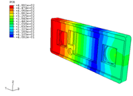 许多元件间的接触作用:各个元件置于主PCB板和前后外壳之间,由粘接剂或铆头固定,各个元件之间和内壁会发生接触。 以上结构为薄壁结构,传统方法采用壳单元模拟。但从CAD软件中导入的模型中往往包括上千个表面,提取中面并划分壳单元是一个需要高技巧和丰富经验,并且非常耗费时间的工作。然而划分四面体的实体单元可以在有限元软件中自动完成,并且只需要几分钟。在这样的情况下需要选择精度和可靠性都很高的四面体单元。 跌落和碰撞问题一般需要采用显式动力学方法进行求解,考虑装配预应力的跌落和碰撞分析需要结合隐式和显式的方法进行求解。Abaqus/Standard和Abaqus/Explicit中均提供10结点的修正四面体单元,模拟接触问题精度很高,并且两个求解器的模型可以无缝转化,这样为进行冲击和跌落分析提供了一种快捷、精确的方法。所以世界上重要手机和汽车生产商如摩托罗拉、诺基亚、宝马等都首选Abaqus作为跌落和碰撞分析的求解器。 封装制造过程模拟: